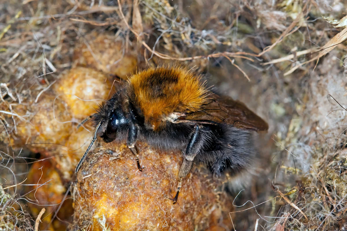 Všichni čmeláci se živí nektarem a pouze královna matka se živí pylem.