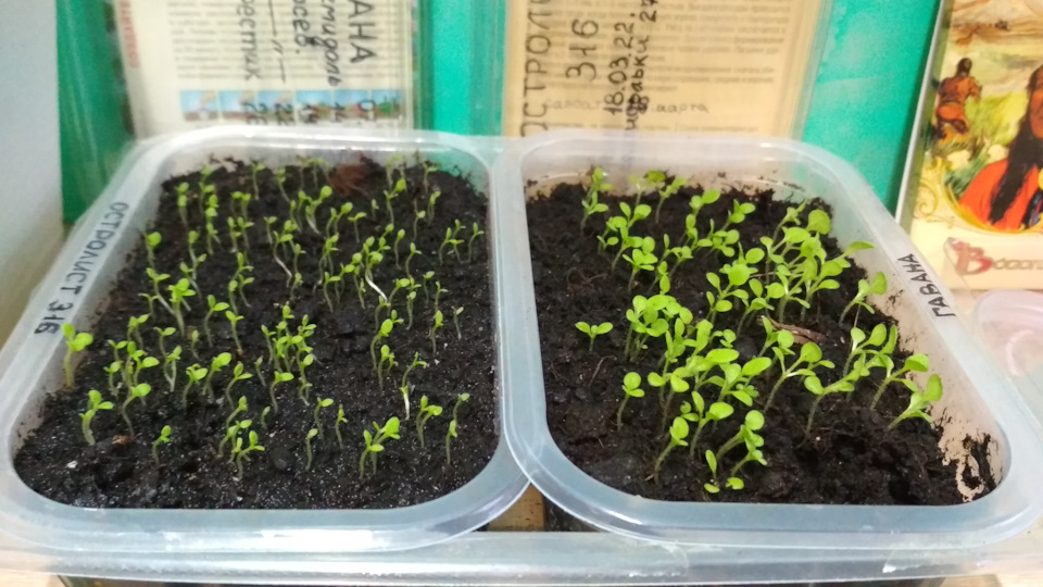 Testoval jsem mnoho různých půd pro chytré zadky: „rašelinovou“, „na rajčata“, „květinovou“; včetně společností; „Petr 1“, „dítě“ a na památku „pěkná zahradní postel“. Bylo odhaleno následovně: je lepší zasadit semena do rašelinové půdy, ale po vyklíčení se rašelinová půda těžko uvolňuje párátkem. Proto je vhodné ve fázi klíčení, během procesu prodlužování stonku, přidat suchou půdu pro rajčata. Okamžitě přichází s potravou z lilek. A tabák je rodina nočníků – fakt. Na fotografii všechny 2 lilky vyklíčily; to jsou „Havana“ a „Holly“. Jde jen o to, že zrna jsou tak malá, že výnos dělohy lze vidět pouze pomocí lupy. V průměru klíček děložního listu vzchází 3., v závislosti na odrůdě a roku sběru semen, až týden.