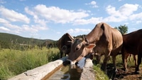 Krávy pijí vodu ze žlabu
