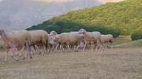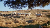 široký záběr ovcí a jehňat procházejících se žlutými loukami ve Španělsku