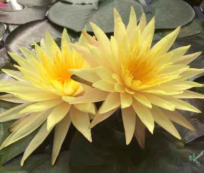 Leknín Pinwaree kvete velkými žlutými dvojitými květy s úzkými dlouhými okvětními lístky. Okvětní lístky nymphea mají složitý barevný odstín, jako by se žlutá mísila s růžovou a přecházela do oranžové. Květy mají heterogenní barvu a mění se v závislosti na teplotě vody a množství slunečního záření.