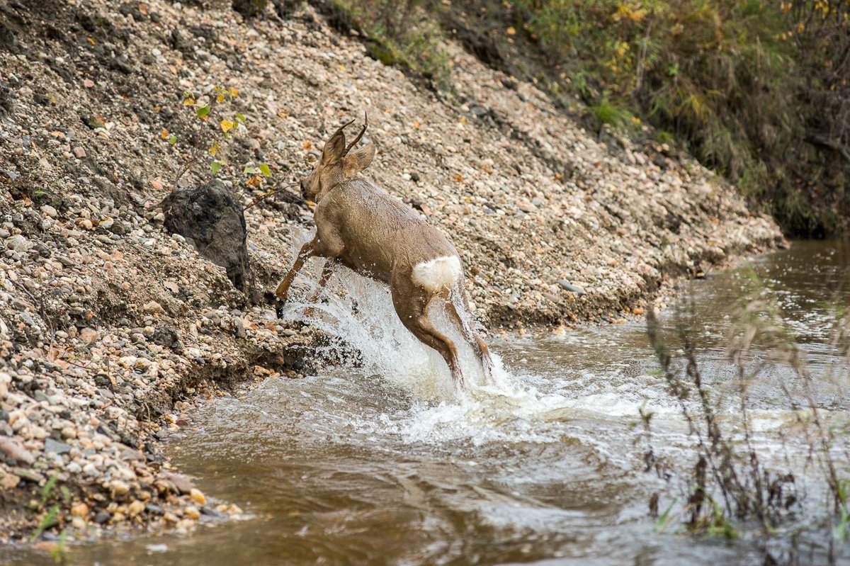 Jakékoli zašustění může srnce přimět, aby se otočili zpět, i když už dorazili na druhý břeh.