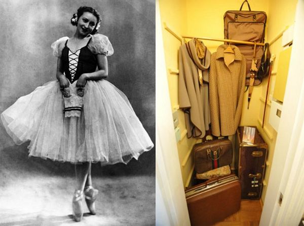 1954 Ulanova – Giselle na jevišti Bolshoi. Mimochodem, balerína zůstala tak křehká až do svých posledních dnů – ne více než 48 kg. Šatní skříň v bytě baletky. Upřímně řečeno, je to trochu stísněné, skromné, ale vkusné.